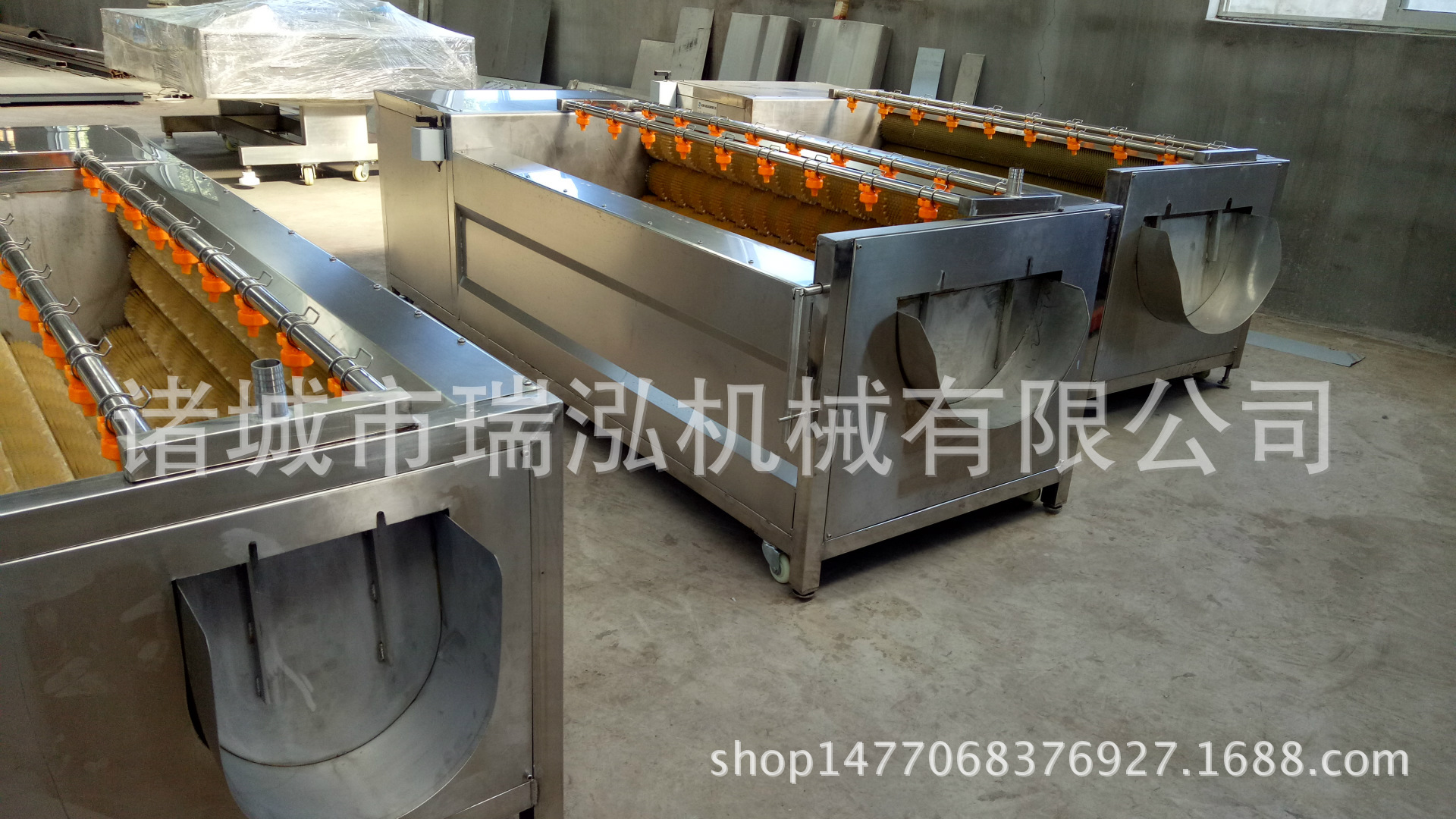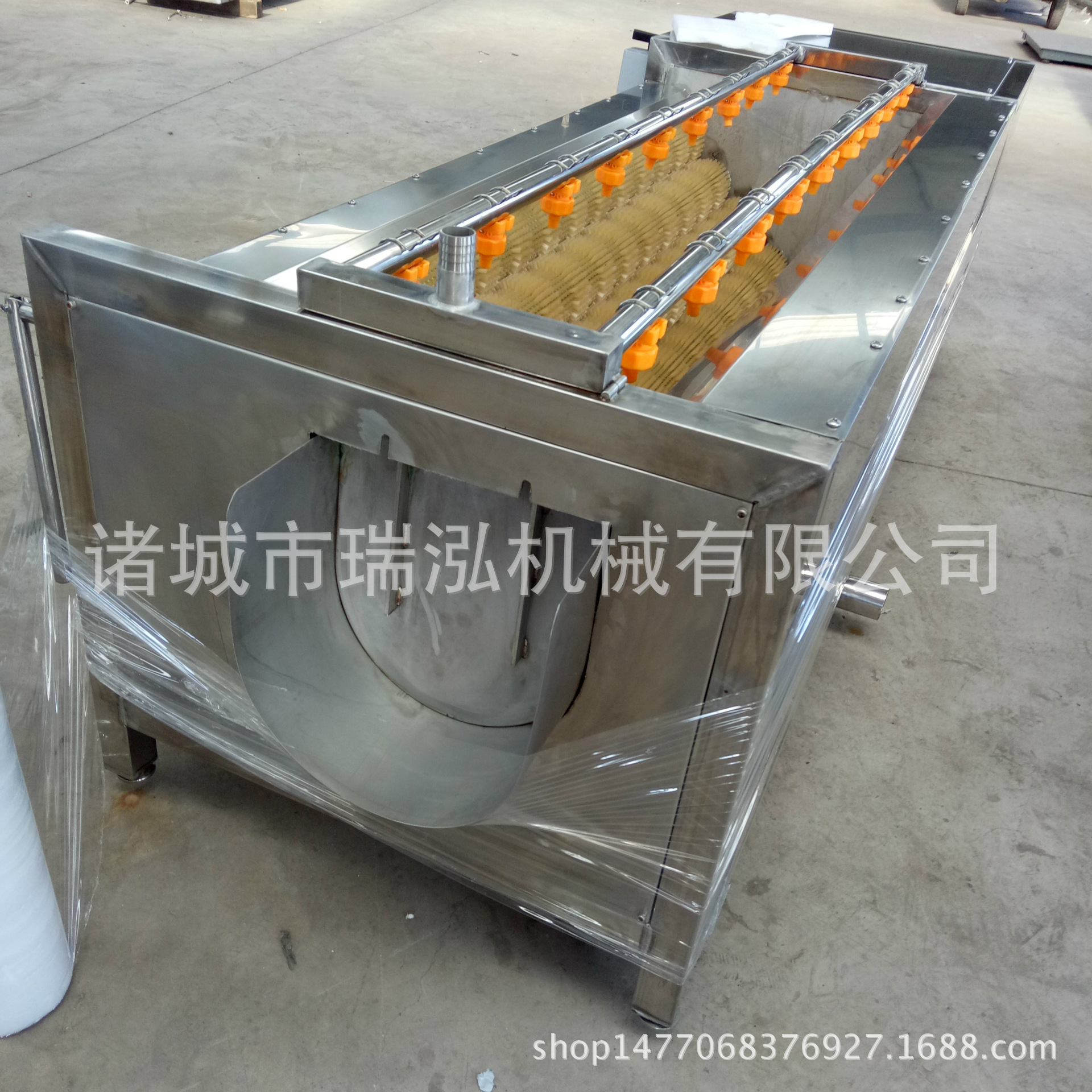 花生清洗機(jī)選用絲質(zhì)較硬的毛刷輥,毛刷輥在電機(jī)的帶動(dòng)下通過(guò)相對(duì)逆向滾動(dòng),與花生直接接觸產(chǎn)生摩擦達(dá)到清洗效果;并設(shè)有特制的自動(dòng)高壓噴淋噴頭進(jìn)行邊翻滾邊沖洗,即可達(dá)到產(chǎn)品清洗去雜的效果;毛刷輥清洗機(jī)的毛刷可分為硬毛和軟毛,硬毛刷選用絲質(zhì)較軟的毛刷輥,主要用于根莖類蔬菜、水產(chǎn)品以及各種藥材的清洗去皮。例如:馬蹄、土豆、蓮藕、胡蘿卜、洋蔥、魔芋、山藥、大姜等;去皮后的物料光滑干凈,較大程度隆低物料損傷,軟毛刷適用于各種根莖類蔬菜的清洗去雜,可達(dá)到給果蔬上臘拋光的作用,也可用于海產(chǎn)品的清洗去鱗還可用以豬頭豬蹄的去毛后的清洗。并要注意的是,工作時(shí)要先開機(jī)運(yùn)行后再投料,這樣可以延長(zhǎng)電機(jī)壽命,減少電機(jī)損壞的機(jī)率