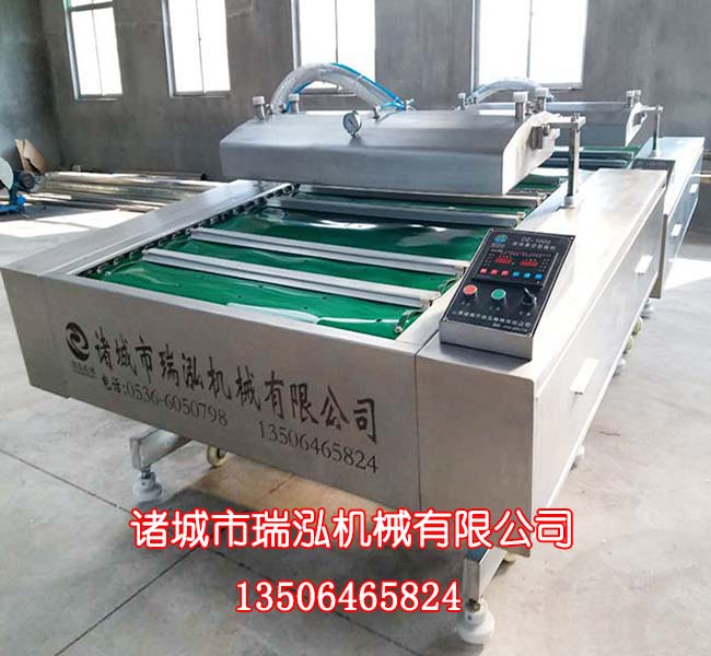 連續(xù)式滾動真空包裝機(jī)介紹:本機(jī)采用鏈條傳動、自動擺蓋,可連續(xù)輸出產(chǎn)品,整機(jī)可傾斜四種角度,雙封條連續(xù)滾動式真空包裝機(jī)可滿足小袋食品的各種包裝要求,單封條可以包裝各種大包裝袋要求,連續(xù)式真空包裝機(jī)大包裝物尺寸可以1100mm,因連續(xù)滾動式真空包裝機(jī)可多角度傾斜所以適合半液體產(chǎn)品的包裝,半液體產(chǎn)品包裝也可用雙室下凹式真空包裝機(jī)包裝,含水分較多的產(chǎn)品可以將產(chǎn)品立起來,在工作室臺面下凹下去,真空包裝機(jī)的使用方法很簡單,主要是根據(jù)客戶產(chǎn)品包裝袋的不同選擇好合適的抽氣時間、加熱時間和冷卻時間,調(diào)試過程中可參照真空表顯示的數(shù)字。具體操作方法:將包裝物放入真空袋之后,將包裝袋放于真空室中,袋口整齊的放到加熱板上,并用壓條壓住,調(diào)節(jié)好時間和加熱溫度(主要有低、中、高)三檔,合蓋抽真空即可。