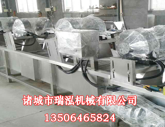 清洗過后的蔬菜表面會掛載大量的水珠,需采用常溫風干的方式將其去除,我公司生產(chǎn)的連續(xù)式風干機能很好的解決這一問題。