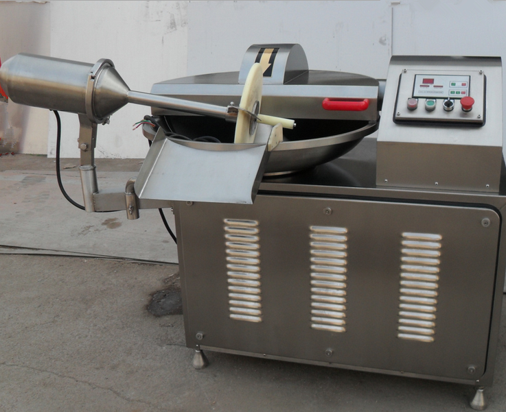 斬拌機(jī)利用斬刀高速旋轉(zhuǎn)的斬切作用,將肉及輔料斬成肉餡或肉泥,還可以將輔料、冰片、水與肉餡或肉塊一起攪拌均勻。
