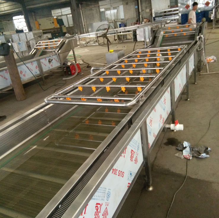 蔬菜水果清洗設(shè)備適應(yīng)于瓜果、莖類、蔬菜、蘑菇及中草藥等物料的清洗,除雜輸送,尤適于瓜果、蔬菜及腌漬的清洗、脫鹽等各項(xiàng)工作的流水。菠菜、白菜、豆角、芹菜、韭菜、梅干菜、芽苗菜、黃花菜、油麥菜、花菜,玉米等葉類蔬菜的清洗去雜,去農(nóng)殘,橙子 草莓,獼猴桃西紅柿等水果清洗打蠟,根莖類產(chǎn)品清洗、浸泡。是各種蔬菜 、水果等清洗流水線的一種理想清洗設(shè)備。也用于海產(chǎn)品,根莖類產(chǎn)品的清洗、浸泡,一機(jī)多用,該機(jī)可以定做,合理設(shè)計(jì),板材,經(jīng)久耐用它代替了繁重的體力勞動(dòng),實(shí)現(xiàn)了農(nóng)產(chǎn)品的機(jī)械化。將切割好的蔬菜、水果等要清洗的物料放入蔬菜清洗機(jī)清洗槽內(nèi),采用高壓氣泡水浴沖擊下,使物料在水里翻轉(zhuǎn),有效地分離蔬菜表面泥沙等雜志,傳送網(wǎng)袋緩慢往前輸送物料,清洗過進(jìn)水管和高壓噴嘴的水流可以持續(xù)供水,方便客戶跟進(jìn)需求控制,水流的大小可以控制,清洗下來的污物,經(jīng)濾網(wǎng)被攔截,而清潔干凈的菜,由輸送帶提升進(jìn)入下一個(gè)工序,而在提升過程中再次被噴淋清洗。